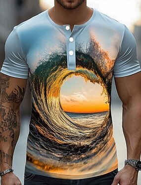 Homme 3D La nature T-shirt Chemise Henley Manche Courte Designer Rétro Vintage Occasionnel Occasionnel Quotidien Rue Été Printemps Bleu Henley T-shirt Henley