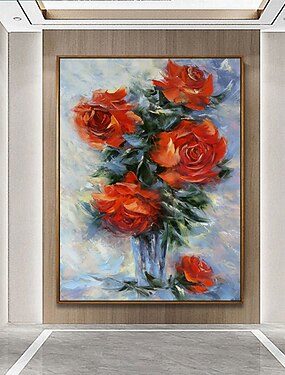 Main peinture à l'huile toile mur art décoration moderne floral rouge rose nature morte planteur pour la décoration intérieure roulé sans cadre non étiré peinture