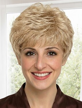 Perruque courte blonde cendrée dégradée, coupe pixie, pour femme - cheveux synthétiques texturés et effilés avec frange, aspect naturel