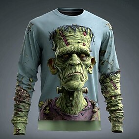 Homme Zombies 3D Sweatshirt Punk Fête Gothique manche longue Col ras du cou Vacances Bleu Violet Vert Col rond 3D Toutes saisons Designer S M L XL XXL XXXL