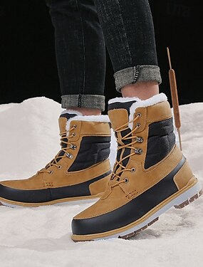Bottes d'hiver marron pour homme avec doublure polaire, chaussures isolées et imperméables pour temps froid, idéales pour la randonnée, les aventures en plein air et les activités hivernales.