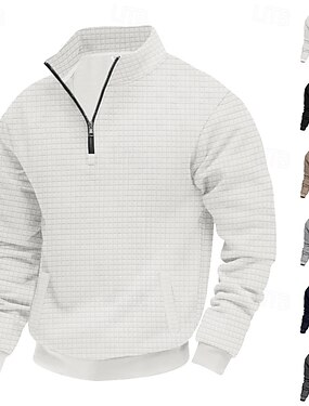 Homme Sweat-shirt Sweat-shirt en polaire Pull Sweat-shirt quart de fermeture éclair Noir Blanche bleu marine Café Demi-zip Uni Jacquard Sport & Loisir Occasionnel Quotidien Streetwear Basique