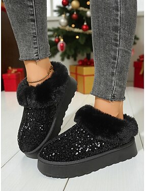 bottes de neige en fausse fourrure moelleuse pour femmes, bottines d'hiver chaudes pour l'intérieur &vêtements d'extérieur, chaussures en peluche confortables pour Noël, sorties au ski &temps froid