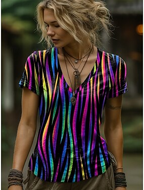 Femmes T-shirt Imprimé Graphique Géométrique Abstrait ancien Élégant Classique Manche Courte Col en V Hauts Réguliers Quotidien Violet Été Printemps