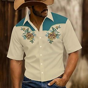 Homme Imprimé Floral Fleurs Chemise Chemise Western Chemise de cow-boy Manche Courte Vintage Rétro Extérieur Vacances Vêtements de travail Été Printemps Col Rabattu Impression 3D Chemise en lin