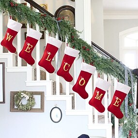 bas de Noël personnalisé avec lettres, chaussette en velours doré haut de gamme rouge avec lettres, chaussette de Noël avec nom à faire soi-même, chaussette cadeau pour maman pour Noël