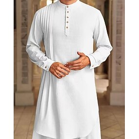 Homme Chemise Chemise en lin Chemise d'été Chemise de Plage Uni Vacances Hawaïen Bleu Noir Blanche Rose Claire manche longue Col montant Printemps & Été Vêtement Tenue Basique