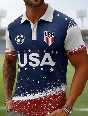 Coupe du monde de football 2026 Homme Football Polo Manche Courte Polos Revers Occasionnel Athleisure Impression 3D Boutons Printemps & Été Bleu