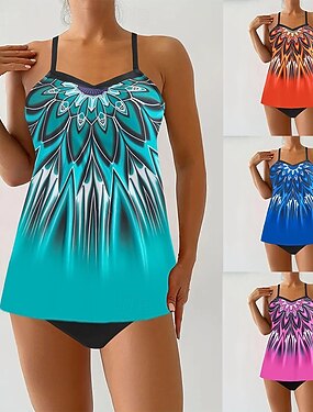 Femmes Maillot de bain Tankini 2 Pièces Dégradé Protection UV Élastique Sans manches Maillot de Bain Maillot de bain Surf Plongée Natation Été