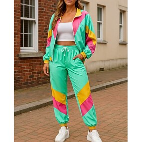 Femmes Sweat zippé Vêtements de sport des années 80 Survêtement 2 pièces Bouffant avec poche Bloc de Couleur Ensemble Vêtements Automne Vert Randonnée Métier Extérieur Léger manche longue Sport