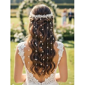 Accessoire de cheveux élégant pour femme, orné d'une pampille en fausses perles, idéal pour les mariages et parfait pour les mariées.