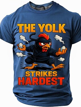 T-shirt graphique pour homme 'Le jaune frappe le plus fort' humour drôle jeu de mots poulet ninja à manches courtes