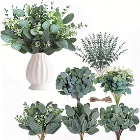 Lot de 60 tiges et branches de feuillage artificiel mélangé (6 variétés), eucalyptus argenté, pour vases et compositions florales de mariage.