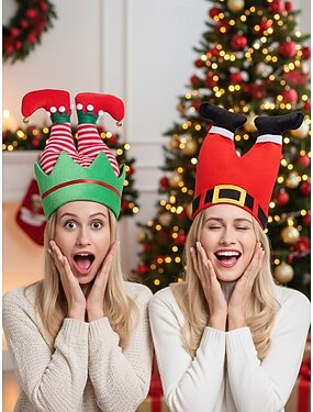 Bonnet de Noël en maille pour femme – rouge avec motif renne et pompon, en polyester, idéal pour les fêtes de fin d'année et les vêtements d'hiver