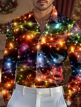 Noël Homme Paillettes scintillantes Eclairage de Noël Chemise Chemise en satin Chemise habillée manche longue Mode Décontractée Extérieur Soirée Fête Printemps Automne Col Rabattu Impression 3D