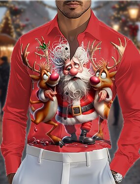 Noël Homme Costume de Noël Costume cravate chemise de smoking imprimée Chemise Chemise en satin Chemise habillée manche longue Mode Décontractée Extérieur Soirée Fête Printemps Automne Col Rabattu