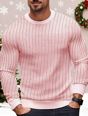 Homme Pull de Noël Chandails de Noël pull de Noël Pull Côtelé Crochet Tricoter Hauts Réguliers Tricoté Uni Col ras du cou Moderne Contemporain Travail Tenue quotidienne Vêtement Tenue Hiver Blanche