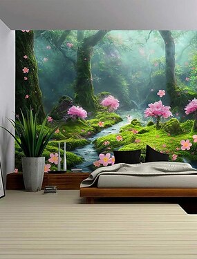 Grande tapisserie murale représentant un paysage de plantes naturelles, avec une photographie de fond, un rideau ou une couverture décorative pour la maison, la chambre ou le salon.