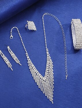 Parure de bijoux 4 Chrome 1 Collier 1 Bracelet 1 Bague Boucles d'oreilles Femmes Mode Gouttes Parure de Bijoux Pour Mariage Tenue de soirée
