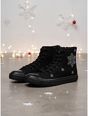 Baskets montantes blanches pour femme, ornées de strass flocons de neige, style streetwear décontracté de Noël, parfaites pour les tenues de fêtes, les promenades en extérieur, les voyages et le quotidien.