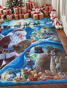 tapis de zone d'animaux de la forêt de Noël pour le salon et la chambre tapis en faux cachemire du Père Noël avec ours tapis d'art de vacances doux et anti-dérapant lavable en machine Frosty par