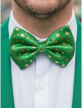 Nœud papillon à paillettes pour homme, en polyester vert avec motifs de trèfle et festifs, nœud papillon habillé ajustable pour les fêtes irlandaises, les défilés, les bars et les célébrations de la Saint-Patrick.
