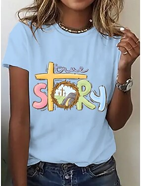 Femmes T-shirt Graphique Lettre Élégant Classique Occasionnel Manche Courte Col rond Hauts Réguliers Quotidien Sortir Week-end Bleu Frêne Noir Blanche Rose Claire Été Printemps red friday