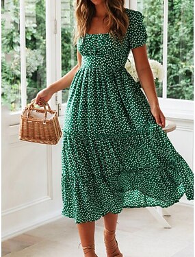 Femmes Robe Midi Robe en Chiffon Robe Décontractée Robe Fleurie Élégant Mode Moderne Extérieur Vacances Sortir Coupe régulière Uni Manche Courte Col carré Noir Jaune Rouge Vert Été Printemps