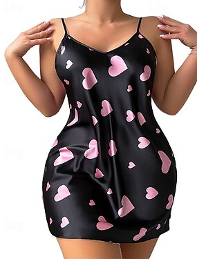 Femmes Loungewear Chemise de Nuit Mode Occasionnel Doux Cœur Patchwork Dos nu Robes Maison Vacances Sans manches Col en V Noir Rose Claire Été Printemps Automne Coupe régulière