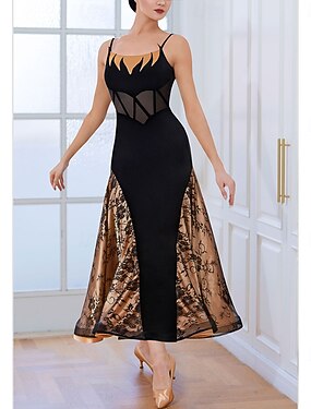 Danse de Salon Robe Dentelle Plis Épissage Femmes Soirée Entraînement Performance Sans manches Haut Spandex Polyester