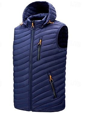 Homme Gilet matelassé Gilet Vacances Quotidien Date Mode Occasionnel Hiver Avec Poches Polyester Chaud Confortable Couleur Unie Fermeture éclair À capuche Coupe régulière Noir Vin Bleu Vert Véronèse