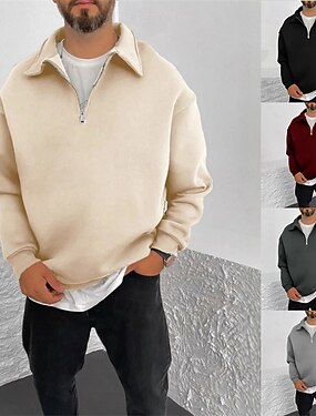 Homme Sweat-shirt Pull Sweat-shirt quart de fermeture éclair Rouge vin Noir bleu marine Gris foncé Beige Demi-zip Uni Sport & Loisir Occasionnel Quotidien Streetwear Basique Occasionnel Automne Hiver