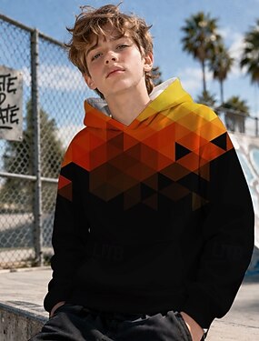 Garçons 3D Graphique Géométrique Sweat à Capuche Pull manche longue Impression 3D Été Printemps Sports Mode Streetwear Enfants 4-12 ans À capuche Occasionnel Quotidien Extérieur Coupe régulière