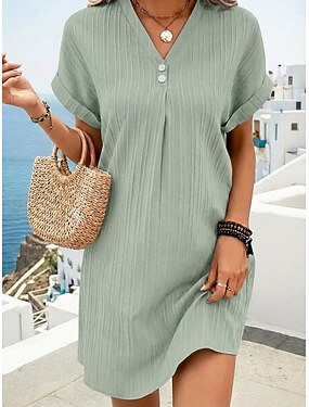 Femmes Mini robe Robe Décontractée Robe T-Shirt Robe d'été Basique Classique Quotidien Vacances Coupe Ample Uni Manche Courte Col en V Bleu Noir Blanche Vert Claire Été Printemps