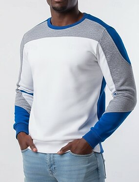 Homme Sweat-shirt Noir Bleu Vert Col ras du cou Uni Patchwork Sport & Loisir Quotidien Fête Polyester Streetwear Basique Occasionnel Printemps Automne Vêtement Tenue Pulls Capuche Pulls molletonnés