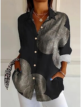 Homme Chemise Formes Géométriques Extérieur Plein Air Noir Marron manche longue Col rabattu Automne hiver Vêtement Tenue Boutons