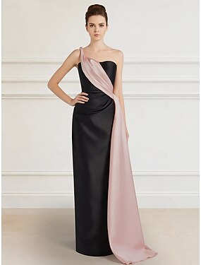 Fourreau Colonne Longueur au sol Robe de bal avec cape Robes de Bal Robe de Soirée Élégant Soyeux Sans manches Une Épaule Formel Anniversaire Satin avec À Bretelles