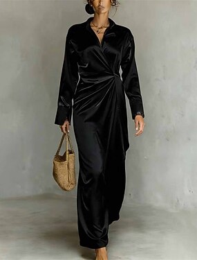 Femme robe longue Robe chemise Robe casual Robe d'été mode Décontractées Vacances du quotidien Rendez-vous Standard Plein manche longue Revers Noir Blanche Rouge Violet Eté Printemps
