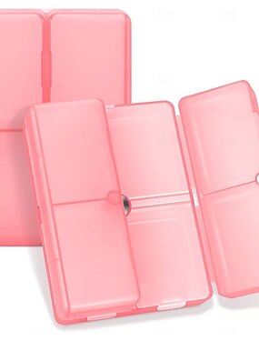 Pilulier journalier, étui à pilules portable à 7 compartiments, idéal pour les voyages [modèle pliable], à glisser dans un sac à main pour ranger vitamines, huile de foie de morue, compléments alimentaires et médicaments - rouge transparent
