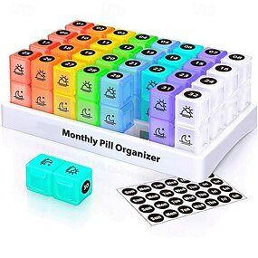 Pilulier mensuel matin/soir – médicaments à prendre deux fois par jour &Rangement des vitamines avec étiquettes et autocollants pour une gestion quotidienne facile