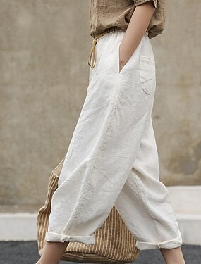 Femmes Faux coton lin Slacks Pantalon d'été Occasionnel Longueur complète Longueur cheville Naturel Rayé Géométrique Avec Poches Impression Conception à cordon élastique Confortable Confort Non