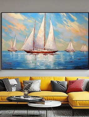 main peinture à l'huile toile mur art décoration abstrait paysage marin peinture coloré bord de mer coucher de soleil pour la décoration intérieure roulé sans cadre non étiré peinture