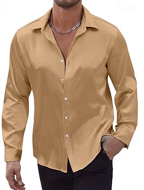 Homme Chemise Chemise en satin Chemise Décontractée Chemise Boutonnée Chemises non rentrées Uni Formel Quotidien Noir Blanche Vin Bleu Roi manche longue Revers Printemps & Automne Toutes saisons