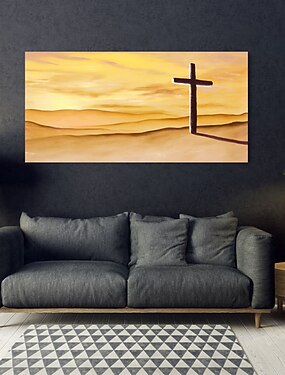 Peinture à l'huile faite à la main toile art mural décoration religion jésus croix paysage désertique pour la décoration intérieure roulé sans cadre peinture non étirée