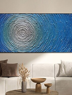 Peinture à l'huile sur toile, réalisée à la main, décoration murale abstraite à la texture texturée, style plage et mer bleue, pour salon, entrée ou hall d'entrée. Toile roulée, sans cadre et non