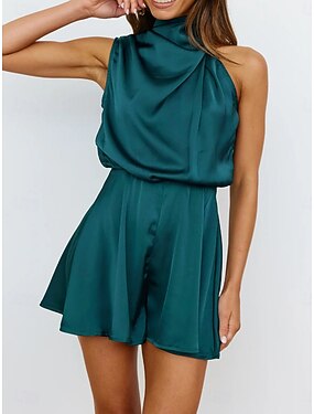 Femmes Normal Combishort Élégant Couleur Unie Sans manches Col roulé Quotidien Vacances Coupe régulière Bleu Noir Vert Claire Été