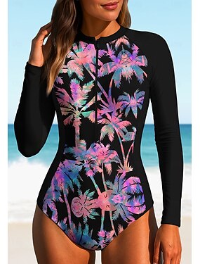 Femmes Standard Maillot Anti UV Maillot de bain Boyleg Tropical Zip Up Coussin amovible fermeture éclair sur le devant Protection Solaire UV UPF50+ Ultra Léger (UL) manche longue Maillot de Bain