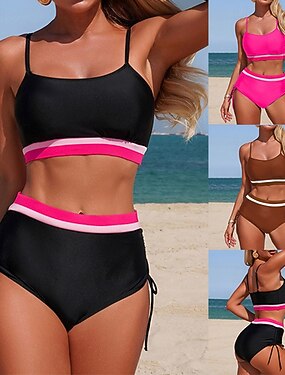 Maillots de bain 2 pièces bikini pour femmes briefs colorblock dos nu vacances à la plage rayé col halter sans manches