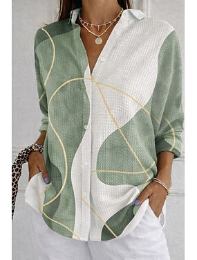 Femmes Chemise Chemise gaufrée Chemise Décontractée Graphique Géométrique Élégant Vacances ancien manche longue Hauts Longs Vert Claire Rose Claire Arc-en-ciel Été Printemps Automne Hiver