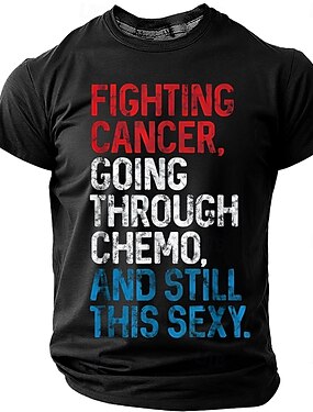 T-shirt sexy, rouge, blanc et bleu, symbole de combativité et de soutien aux hommes en chimiothérapie. Coupe classique, motif graphique, sensibilisation au cancer et rétablissement. Vêtements de